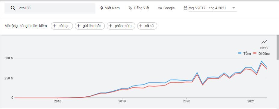 Theo thống kê google thì có 500.000 lượt tìm kiếm mỗi tháng về Loto188